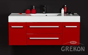 Szafka łazienkowa wisząca z umywalką o szerokosci 120 cm. Zestaw z dolomitową umywalką - meble łazienkowe wykonane są w kolorze czerwonym seria Fokus CZ Gante.