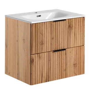 Szafka wisząca z umywalką , zestaw, Adel, 60x46x57 cm, dąb wotan, mat. Nowoczesna i niezwykle efektowna szafka łazienkowa z ergonomicznym układem funkcjonalnym. Dzięki nowoczesnemu, a jednocześnie uniwersalnemu stylowi pozwala na dużą swobodę w aranżacji . Dedykowany mebel idealnie sprawdzi się w każdej łazience, nie zajmując przy tym zbyt wiele przestrzeni . Najważniejsze cechy szafki wiszącej z umywalką:
