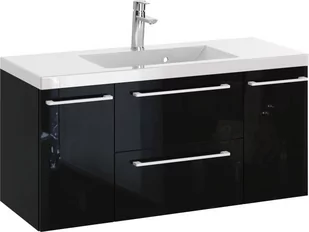Szafka Wisząca Z Umywalką RON 100 cm D - Czarny Wysoki Połysk - Uchwyty Białe Matowe