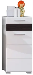 Trendteam mz80212 Bad komoda biała wysoki połysk, wstawki imitujące melinga Dark Oak rowkowanej strukturze, szer. x wys. x głęb. 37 x 79 x 31 cm 1280-802-12