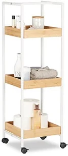 Relaxdays, biało-brązowy regał łazienkowy mobilny, 3 półki, kółka, regał uniwersalny wys. x szer. x gł.: ok. 89 x 30 x 30 cm, drewno i metal, standard