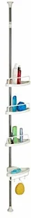 Relaxdays regał teleskopowy do kabiny prysznicowej, 4 półki z tworzywa sztucznego, do łazienki, regał zaciskowy, z regulacją wysokości, stal nierdzewna, srebrny