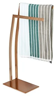 Szczegóły wieszaka na ręczniki ze stali nierdzewnej WIMEDO - Z 2 zakrzywionymi prętami - Całkowita wysokość x szerokość x głębokość: ok. 84 x 32 x 20 cm - Waga: ok. 3,0 kg - Materiał: stal nierdzewna z miedzianym, srebrnym wykończeniem - Kwadratowa podstawa o wymiarach wys. x szer. x gł. : ok. 1 x 32 x 20 cm Wieszak na ręczniki z 2 wieszakami na ręczniki- Z 2 ramionami na różnych wysokościach - Odstęp między prętami: