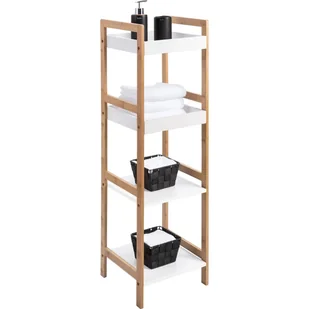 BALIV Regał łazienkowy prosty 4 półki 100x30x29cm Regał łazienkowy 4-poziomowy. Składa się z 2 białych półek, 2 białych organizerów i ramy z bambusa. Regał łazienkowy oferuje miejsce na ręczniki i lekkie przybory łazienkowe. Maksymalne obciążenie jednej półki: 3kg. baliv - stworzony by służyć całe życie Meble łazienkowe baliv zmienią Twoją łazienkę w eleganckie i stylowe pomieszczenie.