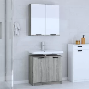 Ten atrakcyjny zestaw szafek łazienkowych, oferujący sporo miejsca, prezentuje stylową, a zarazem praktyczną formę.