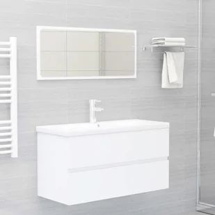 Komplet mebli, obejmujący lustro i szafkę, wykonano z wytrzymałej i stabilnej płyty wiórowej. Elegancka szafka zawiera 1 szufladę, oferując sporo miejsca do przechowywania Twoich rzeczy w łazience. Jej górna część sprawdzi się idealnie do umieszczenia na niej umywalki. Lustro doda zaś nieco stylu do wystroju Twojego domu. Ponadto ten zestaw łazienkowy można łatwo wyczyścić przy pomocy wilgotnej ściereczki.