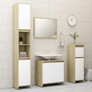 Wykonany z najwyższej jakości płyty zestaw jest trwały i stabilny. Elegancka wysoka szafka ma 6 przegródek i 2 drzwiczek, oferując przestronną przestrzeń do przechowywania przedmiotów w łazience. Szafka pod umywalkę ma 1 przegródkę i 2 drzwiczek, zapewniając wystarczająco dużo miejsca na przechowywanie przyborów toaletowych, kosmetyków i różnego rodzaju mniejszych przedmiotów. Możesz nawet wygodnie uporządkować grzebienie, kosmetyki, szczoteczki i pastę do zębów na półkach w zasięgu ręki. Lustro stanowi doskonały dodatek do istniejącego wystroju domu. Dodatkowo ten zestaw łazienkowy można łatwo wyczyścić, wystarczy przetrzeć wilgotną ściereczką.