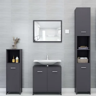 Wykonany z najwyższej jakości płyty zestaw jest trwały i stabilny. Elegancka wysoka szafka ma 6 przegródek i 2 drzwiczek, oferując przestronną przestrzeń do przechowywania przedmiotów w łazience. Szafka pod umywalkę ma 1 przegródkę i 2 drzwiczek, zapewniając wystarczająco dużo miejsca na przechowywanie przyborów toaletowych, kosmetyków i różnego rodzaju mniejszych przedmiotów. Możesz nawet wygodnie uporządkować grzebienie, kosmetyki, szczoteczki i pastę do zębów na półkach w zasięgu ręki. Lustro stanowi doskonały dodatek do istniejącego wystroju domu. Dodatkowo ten zestaw łazienkowy można łatwo wyczyścić, wystarczy przetrzeć wilgotną ściereczką.