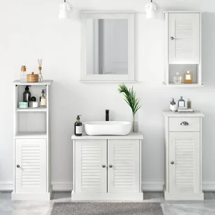 Kolor: Antyczna biel Materiał: Lite drewno sosnowe Skończyć: Rustykalne Ogólne wymiary: 37 x 34 x 110 cm (dł. x szer. x wys.) Ciężarki: 43,8 kg Z 12 szufladami Z lustrem Rozmiar lustra: 55,5 x 5 x 70 cm (dł. x szer. x wys.) Z 11 półkami Z 5 drewniane drzwi z litego drewna Tylko do użytku wewnątrz Contain dostaw: 1 x Szafka pod umywalkę: 68 x 34 x 59 cm (LxWxH) 1 x Szafka łazienkowa: 37.5 x 34 x 80 cm (LxWxH) 1 x Szafka łazienkowa: 37 x 34 x 110 cm (LxWxH) 1 x Lustro: 55.5 x 5 x 70 cm (LxWxH) Wymagany montaż: Tak Nazwa zakresu: Vigo