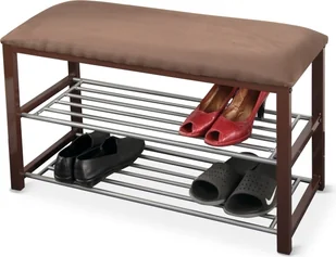 Elegancki stojak na buty LANGELLA z ławką będzie praktycznym dodatkiem do przedpokoju. Uzupełnieniem półki na buty jest ławka do siedzenia. Materiał użyty do produkcji to metal w połączeniu z tkaniną w wersji kolorystycznej czekolada / ciemny brąz / szary. Wysokość siedziska wynosi 49 cm, a głębokość 31 cm. Nośność stojaka na buty wynosi 80 kg.