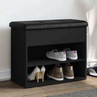 grubo wyściełana poduszka siedziska zapewnia optymalny komfort siedzenia podczas zakładania i zdejmowania butów. Wszechstronne zastosowanie: ławka może być używana jako ławka na buty w przedpokoju lub jako ławka do przechowywania w salonie. Ławka: Kolor: CzarnyMateriał: Materiał drewnopochodnyWymiary całkowite (z poduszkami):
