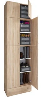 wys. 240 x szer. 70 x gł. 39 cm Szafka na buty VCM "Lona XXL" wyróżnia się nie tylko ponadczasowym designem i wysoką jakością wykonania. Sześć przegródek i szuflada oferują również mnóstwo miejsca na buty. Trwała i niezawodna jakość obejmuje również unikalny pakiet serwisowy i kompletny materiał montażowy. Szafkę na buty VCM można uzupełnić innymi meblami z serii "VCM Lona".