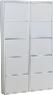 Mebel jest dostarczany w stanie zmontowanym i jest gotowy do użycia natychmiast po otrzymaniu. 2 szafki na buty mogą być również używane osobno. Piękna szafka na buty wykonana z malowanego proszkowo metalu, w której można przechowywać buty, aby zaoszczędzić miejsce. Dzięki tej eleganckiej szafce na buty można zorganizować przechowywanie butów w strefie wejściowej, pomieszczeniu gospodarczym lub sypialni. Wszystkie drzwi w każdej szafce na buty otwierają się jednocześnie.