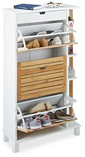 Relaxdays Szafka na buty na 12 par butów, szafka na buty z szufladą i bambusową pokrywą składaną, regał na buty z drewna, biały