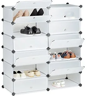 35 x 45 cm - 12 drzwi, każde o wymiarach ok. 17 x 45 cm - 44 elementy łączące Oszczędzający miejsce stojak na buty do złożenia - 12 przegródek zapewnia miejsce na co najmniej 24 pary butów - Może być jako otwarta półka lub zamknięta szafka - Łatwy montaż bez wiercenia i śrub dzięki systemowi wtykowemu - Możliwość montażu w różnych wariantach - w kolorze czarnym, białym i przezroczystym Zakres dostawy - Szafka na buty w pojedynczych częściach - Przykładowa instrukcja montażu - Drewniany młotek - Elementy dekoracyjne nie wchodzą w zakres dostawy
