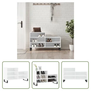 Biały drewniany stojak na buty 102x36x60 cm o wysokim połyskuPrzechowuj swoje buty bez kurzu w tej eleganckiej szafce na buty, aby utrzymać porządek w swojej przestrzeni życiowej!Trwały materiał: Drewno inżynieryjne to materiał wyjątkowej jakości o gładkiej powierzchni, który charakteryzuje się wytrzymałością, stabilnością i odpornością na wilgoć. Wykonana z drewna konstrukcyjnego półka na buty jest łatwa w czyszczeniu. Dużo miejsca do przechowywania: Szafka na buty ma 5 przegródek, dzięki czemu oferuje dużo miejsca do przechowywania butów i innych przedmiotów.