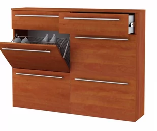 szafka na buty do przedpokoju oryginalny design pomieści 24 par obuwia cztery dwurzędowe, metalowe kosze na obuwie dwie pojemne szuflady na pełen wysuw do samodzielnego montażu materiał: