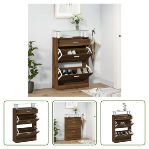 Brązowa dębowa szafka na buty 63x24x104 cm materiał drewnopochodnyTa szafka na buty o nowoczesnym i stylowym designie to doskonały mebel do uporządkowanego i zorganizowanego przechowywania obuwia. Organizer na buty nadaje się do przedpokoju, korytarza, salonu i każdego innego miejsca, w którym chciałbyś go mieć. Trwały materiał: Drewno inżynieryjne to wyjątkowej jakości materiał o gładkiej powierzchni, który charakteryzuje się wytrzymałością, stabilnością i odpornością na wilgoć. Dużo miejsca do przechowywania: