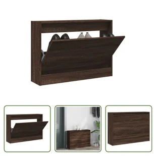 Szafka na buty brązowy dąb 80x21x57 cm materiał drewnopochodnyTa szafka na buty jest doskonałym wyborem do uporządkowania obuwia, szczególnie w ciasnych i wąskich przestrzeniach, dzięki swojej kompaktowej konstrukcji. Trwały materiał: Drewno konstrukcyjne to wyjątkowej jakości materiał o gładkiej powierzchni, który charakteryzuje się wytrzymałością, stabilnością i odpornością na wilgoć. Dużo miejsca do przechowywania: Ten wózek na buty ma 1 składaną szufladę i oferuje wystarczająco dużo miejsca, aby buty były poręczne i dobrze zorganizowane.