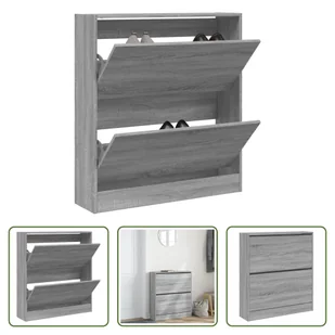 Szafka na buty szara Sonoma 80x21x87,5 cm materiał drewnopochodnyTa szafka na buty jest doskonałym wyborem do uporządkowania obuwia, szczególnie w ciasnych i wąskich przestrzeniach, dzięki swojej kompaktowej konstrukcji. Trwały materiał: Drewno konstrukcyjne to wyjątkowej jakości materiał o gładkiej powierzchni, który charakteryzuje się wytrzymałością, stabilnością i odpornością na wilgoć. Dużo miejsca do przechowywania: Ta wywrotka na buty ma 2 przegrody, dzięki czemu oferuje dużo miejsca na przechowywanie butów.