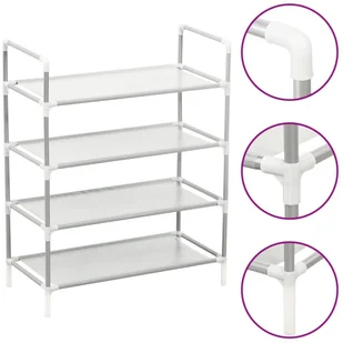 Organizer na buty ma ramę z metalowych rurek, która jest lekka i wytrzymała, dzięki czemu stojak można z łatwością przestawiać i jest on dość stabilny. 4 obszerne półki wykonane z przyjaznej dla środowiska włókniny oferują sporo miejsca na poukładanie butów.