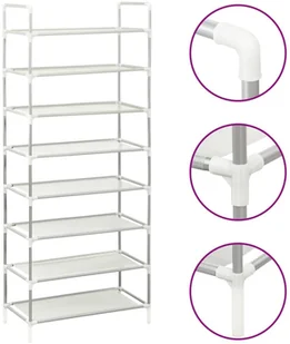 Organizer na buty ma ramę z metalowych rurek, która jest lekka i wytrzymała, dzięki czemu stojak można z łatwością przestawiać i jest on dość stabilny. 8 obszernych półek wykonanych z przyjaznej dla środowiska włókniny oferuje sporo miejsca na poukładanie butów.