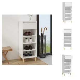 Dzięki temu kompaktowemu stojakowi na buty już nigdy nie będziesz zirytowany leżącymi butami! Praktyczny materiał: Ten stojak na buty jest wykonany z drewna konstrukcyjnego. Drewno inżynieryjne to materiał o wyjątkowej jakości i gładkiej powierzchni, który charakteryzuje się wytrzymałością, stabilnością i odpornością na wilgoć. Mnóstwo miejsca do przechowywania: Dzięki 4 otwartym przegrodom i 1 szufladzie ten stojak na buty oferuje mnóstwo miejsca na buty, pudełka do przechowywania i inne przedmioty.
