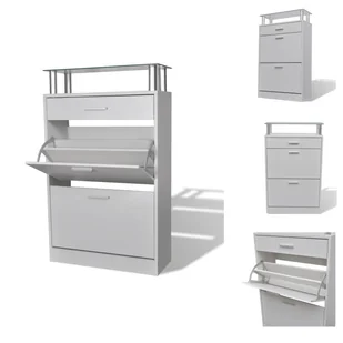 34 cmWysokość szuflady: 11,5 cmZ 2 pojemnymi półkami na buty, 1 szufladą i 1 szklaną półką na górzeŁatwa w montażuUWAGA: Aby zapobiec przewróceniu się szafki, należy przymocować ją do ściany za pomocą dołączonego wspornika.