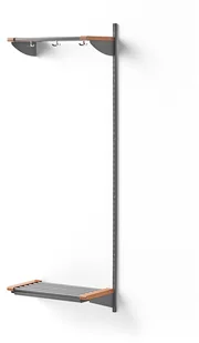 Moduł dodatkowy do regału JEPPE z półką na nakrycia głowy i stojakiem na obuwie. Jeden słupek ścienny, półka na nakrycia głowy z trzema haczykami oraz stojak na buty z ociekaczem. Moduł dodatkowy łatwo połączyć z modułem podstawowym. Rozbuduj regał JEPPE przy użyciu jednego lub kilku modułów dodatkowych z lakierowanej blachy stalowej.