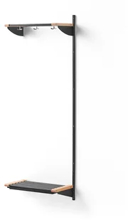 Moduł dodatkowy jest wyposażony w jeden słupek ścienny, na którym należy zahaczyć boczne krawędzie półek. Z drugiej strony półki należy zawiesić na słupku modułu podstawowego. Perforacja na słupkach pozwala umieścić półki na dowolnej wysokości. Zarówno półka na nakrycia głowy, jak i stojak na obuwie wykonano z rur stalowych z elementami z drewna brzozowego.