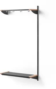 Moduł dodatkowy jest wyposażony w jeden słupek ścienny, na którym należy zahaczyć boczne krawędzie półek. Z drugiej strony półki należy zawiesić na słupku modułu podstawowego. Perforacja na słupkach pozwala umieścić półki na dowolnej wysokości. Zarówno półka na nakrycia głowy, jak i stojak na obuwie wykonano z rur stalowych z elementami z drewna brzozowego.