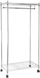 Amazon Basics Stojak na ubrania z górną i dolną półką, 89 x 44 x 179 cm, chrom