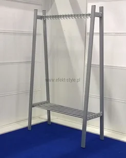 Wieszak wyposażony jest w 60 haczyków ( po 30 po każdej stronie) oraz ławkę do siedzenia.