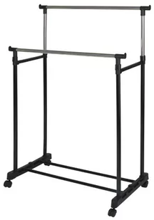 Podwójny stojak na ubrania sprawdzi się do przechowywania ubrań oraz obuwia. Jest idealnym uzupełnieniem wyposażenia każdej garderoby bądź sypialni. Mobilny wieszak stojący wykonany jest z metalu oraz z tworzywa sztucznego. Dzięki regulowanym drążkom stojak można ustawić na wybraną wysokość, przez co swobodnie powiesisz na nim płaszcz i bluzkę. Na dole przenośnego wieszaka znajduje się osobna półka na buty.