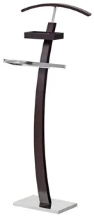 Designerska podstawa stworzona jest z najwyższej jakości chromowanej stali o zawartości aż stali nierdzewnej oraz chromu, co gwarantuje mu niezwykły efekt wizualny, posiadając przy tym ponadprzeciętne cechy antykorozyjne oraz lepszą odporność na uszkodzenia mechaniczne . Stojak posiada ramię do zawieszenia płaszcza, kurtki czy marynarki, jak również reling na spódnice, spodnie lub wieszaki z koszulami. Funkcjonalnym dodatkiem jest także niewielka półka na drobne przedmioty, dzięki której już więcej nie będziesz szukać zegarka czy biżuterii na chwilę przed ważnym wyjściem. Mebel dostępny jest w dwóch modnych kolorach: białym oraz wenge, bez problemu więc wybierzesz ten, który najlepiej dopasuje się do Twojej garderoby lub przedpokoju.