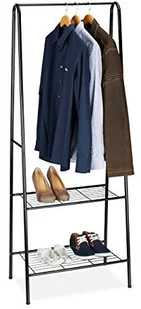 x szer. x gł. : ok. 160 x 61,5 x 38 cm - Waga: ok. 3 kg - Wykonany z rur stalowych, malowany proszkowo - Długość drążka na ubrania: ok. 56 cm - Odległość od podłogi: ok. 15 cm - Odległość między półkami: ok. 34,5 cm - Odległość między górną półką a drążkiem na ubrania: