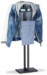x szer. : ok. 81,5 x 40,5 cm - Wieszak na ubrania wys. x szer. : ok. 109,5 x 52,5 cm Szafka na ubrania z półką - Z wieszakiem na ubrania i drążkiem na spodnie - Praktyczna półka na drobne przedmioty - Elegancki design w kolorze czarnym - Bezpieczny stojak dzięki obciążnikowi - Do przedpokoju, garderoby i nie tylko Zakres dostawy - 1x stojak w pojedynczych częściach - Instrukcje i materiały montażowe - ElementyReplika acyjne nie wchodzą w skład zestawu
