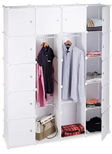 Dzięki sprytnemu systemowi wtykowemu możesz stworzyć garderobę dokładnie tak, jak chcesz. Poszczególne elementy wykonane z wytrzymałego tworzywa sztucznego tworzą do 14 przegródek na spodnie, koszule i swetry za pomocą elementów łączących. Dołączone drążki na ubrania umożliwiają wieszanie bluzek, koszul i kurtek. Szafę można również wykorzystać w biurze, salonie lub przedpokoju. Duże, kwadratowe przegrody oferują mnóstwo miejsca do przechowywania ubrań, segregatorów, książek i różnych artykułów gospodarstwa domowego.
