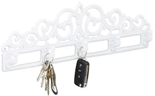 Relaxdays Żeliwny wieszak na ubrania ścienne, 5 haczyków, antyczny styl wiejski, wys. x szer. x gł.: ok. 13,5 x 42 x 4 cm, biały, 4 x 42 x 13,5 cm