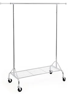 SONGMICS Songmics HSR02S stojak na garderobę na kółkach z półką na buty, metalowy, duży udźwig: do 50 kg, długość: 110,5-150,5 cm, chromowany HSR02S