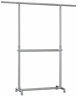 Możesz dostosować stojak do swoich potrzeb. Zaletą stojaka są również 4 obrotowe kółka z hamulcami, które umożliwiają szybkie przemieszczanie ubrań. Stojak nadaje się do domu, ale także do butików. Wymiary: 101-165 x 113-198 x 48,5 cm.