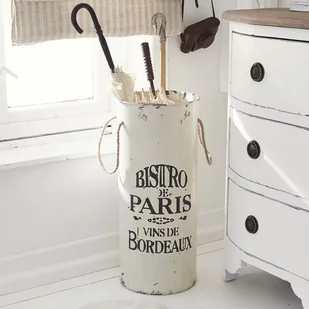 Przechowuj parasole lub laski w świetnym stylu. Autentyczne antyczne wykończenie tworzy popularny efekt w stylu shabby chic. Stylowy nadruk wniesie do Twojego domu francuski klimat. Stojak na parasole można łatwo przestawić za pomocą jutowych uchwytów po bokach, które w naturalny sposób łączą materiał i żelazo. Ten piękny dodatek wygląda jak znalezisko ze strychu lub skarb z francuskiego pchlego targu – wprowadź do swojego domu urokliwy, antyczny klimat.