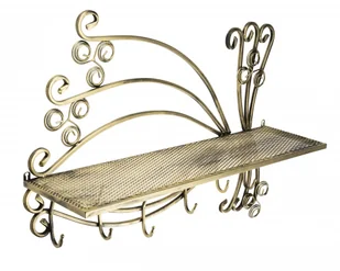 Dekoracyjny Wieszak Ścienny Z Dodatkową Półką Złota Patyna