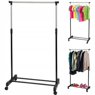 Bardzo praktyczna funkcja w przypadku dłuższych ubrań. Koła z blokadą Nie musimy nosić stojaka. Wyposażony w koła z blokadą przemieścimy bez problemu w dowolne miejsce Wymiary i specyfikacja Wysokość - 80 - 160 cm Szerokość - 78 cm Głębokość - 42 cm Rurki - metal Średnica rurek dolnej półki: 19 mm Średnica rurek bocznych czarnych: 25 mm Średnica rurki górnej: