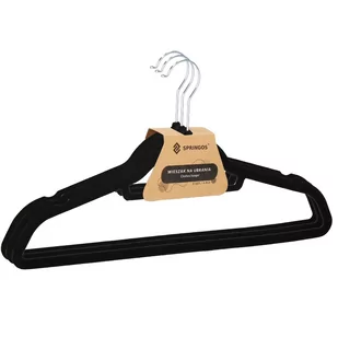 Produkt o grubości 5mm prezentuje się bardzo schludnie i elegancko, przez co ładnie wygląda wewnątrz mebli. Wysoka jakość wykonania sprawia, że wieszaki posłużą swoim posiadaczom przez lata. Parametry: Marka: Springos Materiał: welur Kolor: czarny Szerokość: