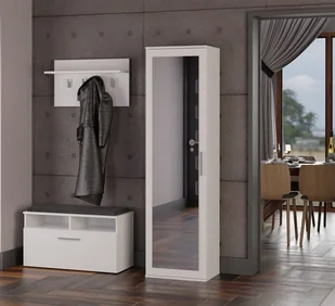 Wymiary szafy z lustrem: głębokość - 35 cm, wysokość - 180 cm, szerokość - 50 cm Materiał: korpus i fronty - płyta laminowana 16 mm, obrzeża - wykończone tworzywem PCV, charakteryzującym się wytrzymałością chemiczną i mechaniczną Kolor: BIAŁY Przeznaczenie: do przedpokoju, do korytarza Styl: