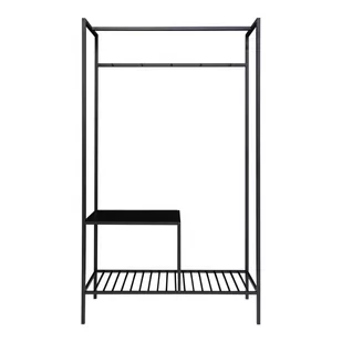 \ Użyj go dla siebie i swoich gości w przedpokoju lub jako miejsce do przechowywania w sypialni Ta otwarta szafa z linii Vita marki House Nordic, zaprojektowana w Danii, łączy nowoczesny czarny wygląd z praktycznością. Wykonana jest ze stali, płyt wiórowych i melaminowych. Dzięki ramie i czarnym metalowym nóżkom doda wnętrzu nowoczesnego charakteru. Dwie półki szafy oferują dużo miejsca do przechowywania ubrań i akcesoriów. Wymiary 38x101x170 cm i waga 9,9 kg sprawiają, że jest to lekka, ale pojemna opcja do przechowywania ubrań.
