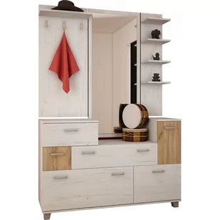 Zawartość zestawu: szafka na buty, lustro, wieszak, regał wiszący;