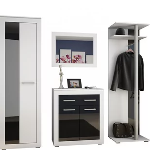 Zawartość zestawu: szafa ubraniowa, komoda, lustro, wieszak;