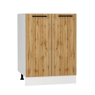 Szafka kuchenna stojąca 60 BONO D60 posiada korpus w kolorze biały mat wykonany z płyty laminowanej oraz front w kolorze dąb złoty z płyty laminowanej. W szafce zastosowano zawiasy z mechanizmem cichego domykania, dzięki czemu zapobiegniemy głośnemu trzaskaniu drzwiczek podczas użytkowania. Dwudrzwiowa szafka wyposażona jest w półkę, która posłuży do przechowywania. Regulowane stopki umożliwią dopasowanie wysokości szafki stojącej do wzrostu użytkownika oraz umożliwi zachowanie poziomu wszystkich szafek w razie nierówności podłogi. Szafka kuchenna 60 BONO D60 to praktyczny element z kolekcji mebli kuchennych firmy Stolkar o szerokości 60 cm umożliwiający zagospodarowanie dolnej przestrzeni o tej samej szerokości.